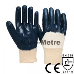 Description: NMSafety Heavy duty work glove with jersey liner 3/4 coated nitrile, knit wrist. Feature: 1.Jersey liner and knit wrist. 2.Blue nitrile 3/4 dipped on glove, provide good ant...