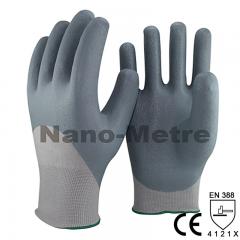 Description: 13 Gauge white nylon liner 3/4 coated grey foam nitrile on palm glove. Feature: 1.13 Gauge Seamless knitted white nylon liner. 2.Foam nitrile 3/4 dipped on glove palm, provi...