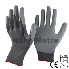 Description: NMSafety 13 gauge grey polyester liner coated grey latex crinkle finished on palm glove. Feature: 1.13 Gauge Seamless knitted grey polyester liner, super soft. 2.Grey latex ...