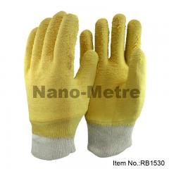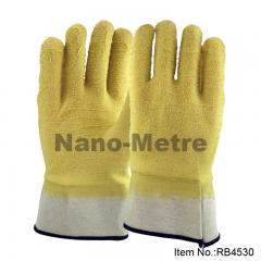 Description: NMSafety work glove with jersey liner full coated latex crinkle finish, safety cuff. Feature: 1.Jersey liner and safety cuff. 2.Yellow latex crinkle full dipped on glove, pr...