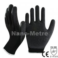 Description: NMSafety 10 gauge black polycotton liner coated black slatex crinkle finished on palm glove. Feature: 1.10 Gauge Seamless knitted black polycotton liner. 2.Black latex dippe...