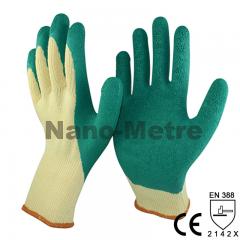 Description: NMSafety 10 gauge yellow polycotton liner coated green latex crinkle finish on palm and thumb glove. Feature: 1.10 Gauge Seamless knitted yellow polycotton liner. 2.Green la...