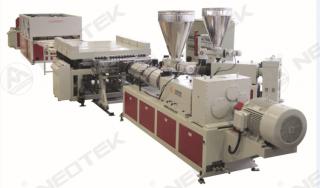 The machine consists main extruder & co-extruder, distributor, calibrator moulding block, cooling rack, haul off, cutter & stacker. ...