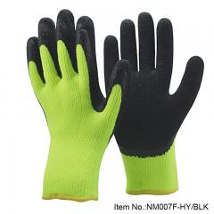 Description: NMSafety 7 gauge Hi-viz yellow acrylic nappy inside liner coated black foam latex on palm glove for winter use. Feature: 1.7 Gauge Seamless knitted Hi-viz yellow acrylic napp...