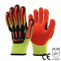 Description: NMSafety 10 gauge orange acrylic liner coated foam latex gloves, anti-vibration padding TPR on back. Feature: 1.10 Gauge Seamless knitted acrylic liner, TPR on back. 2.Or...