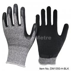 Description: NMSafety 13 gauge Nylon+UHMWPE+Glassfibre liner coated latex crinkle palm gloves, cut resistance level 5. Feature: 1.13 Gauge Seamless knitted grey Nylon+HPPE+Glassfibre line...
