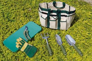 1. INCLUDING: GARDEN BAG, 8" BYPASS PRUNER, ALUMINIUM TROWEL, ALU. TRANSPLANTER, ALU. CULTIVATOR, 1 PAIR OF GLOVES , KNEELER 2. Aluminum tool heads mirror polished surface are rust resistant and ea...