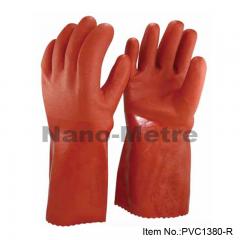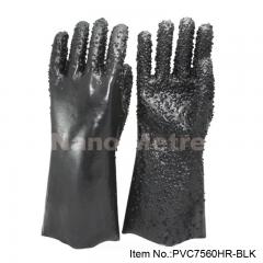 Description: NMSafety Cotton interlock liner with black PVC full coated gauntlet, heavy rough finish on palm. Feature: 1.Cotton interlock liner and...