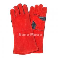 Description: NMSafety Red cow split leather glove, one piece leather on back, full lining. Length available for 30,35,40cm. Feature: 1.Silk screen logo on glove back. 2.Red cow split leath...