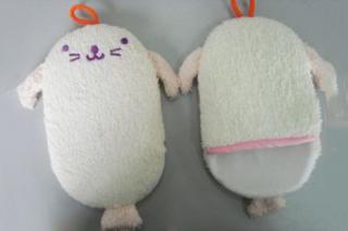Lovely sea lion milk fiber bath sponge brush (glove-shaped) Material: 100% natural short terry cotton for outside cover, which includes milk fiber cotton. Inside is sponge. Feature: Resort...