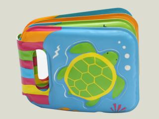 The baby book tortoise shape is very welcomed design in the children's book world. The materials is safe and recycle peva materials, printing by 4 color processes, on the surface with the hot stamp...