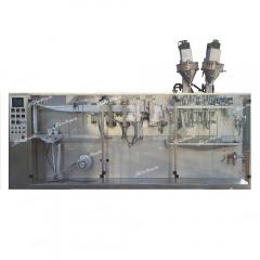 Horizontal duplex pouch packing machine can automatic finish bag forming, filling, easy tear notch making, print date, finished bag discharged. Reclosable zipper, nitrogen flushing, hole punch...