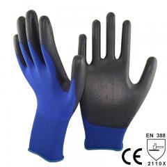 Description: NMSafety 18 gauge navy blue nylon liner coated thin PU on palm glove, offer extremely light & flexible feeling. Feature: 1.18 Gauge Seamless knitted Nylon liner, super fl...