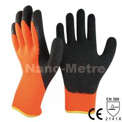 Description: NMSafety 7 gauge orange acrylic nappy inside liner coated black latex crinkle finished on palm glove and thumb for winter use. Feature: 1.7 Gauge Seamless knitted orange acry...